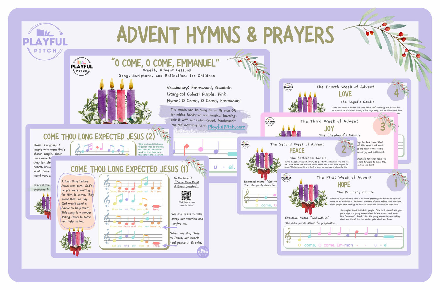 - Christmas + Religious pitch cards bundle: includes 6 popular Christmas songs (religious & secular), and 6 Religious songs (Catholic & Christian Hymns, and children’s Bible songs.)