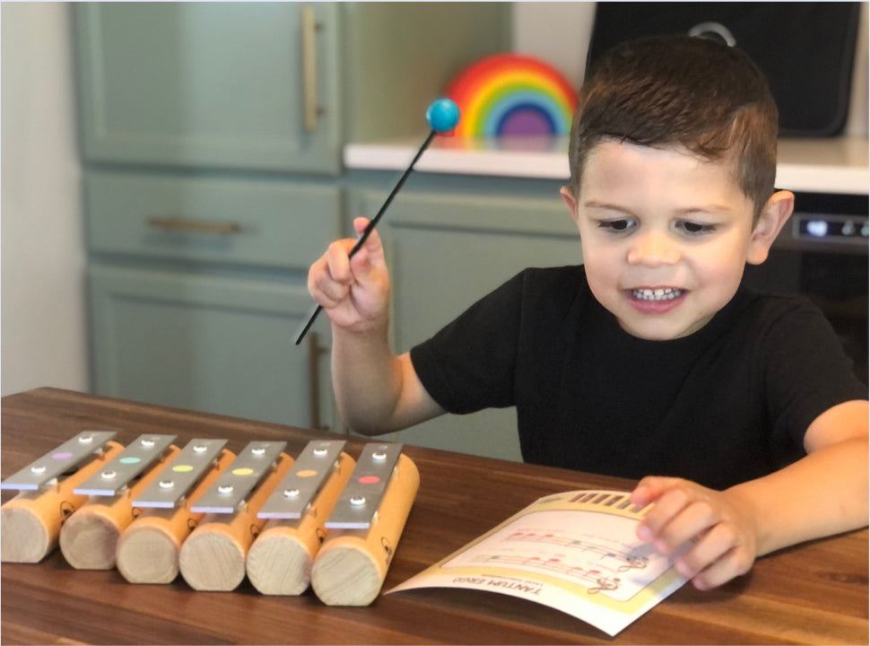 We have customers who have used Playful Pitch to allow the youngest members join the older children to play music together. The older child will play the song on the piano or violin (and a variety of other instruments), while the younger child plays the tune on the Playful Pitch Bars.