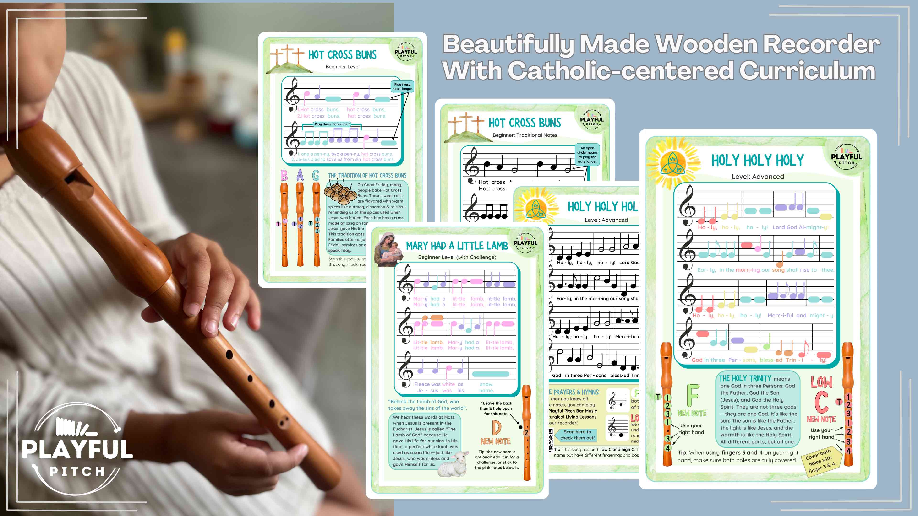 1. Wooden Recorder Set (With Catholic-centered, Color-coded Curriculum + Accessories)