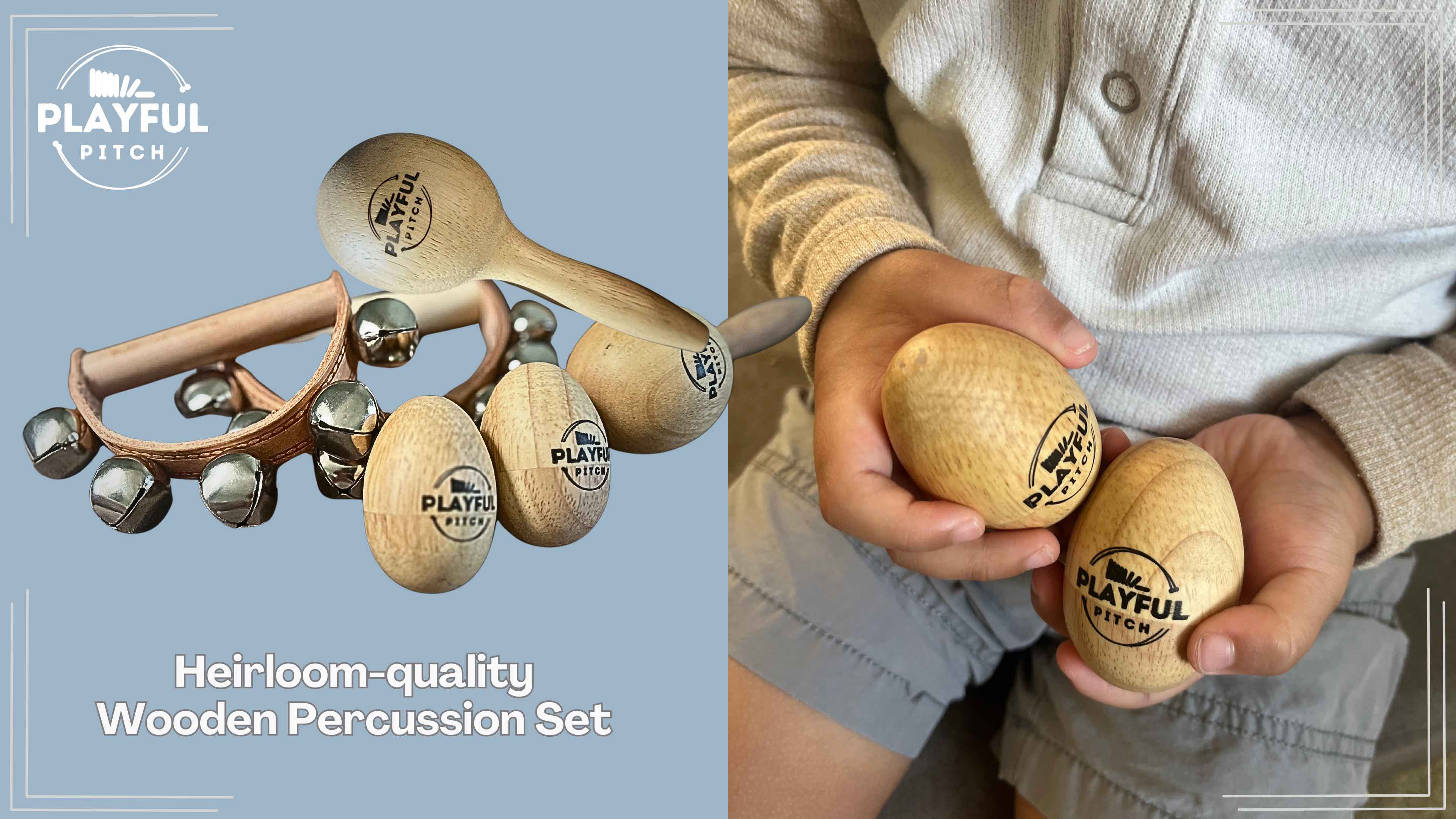 2. Wooden Percussion Set (Egg Shakers, Maracas and Jingle Bells)