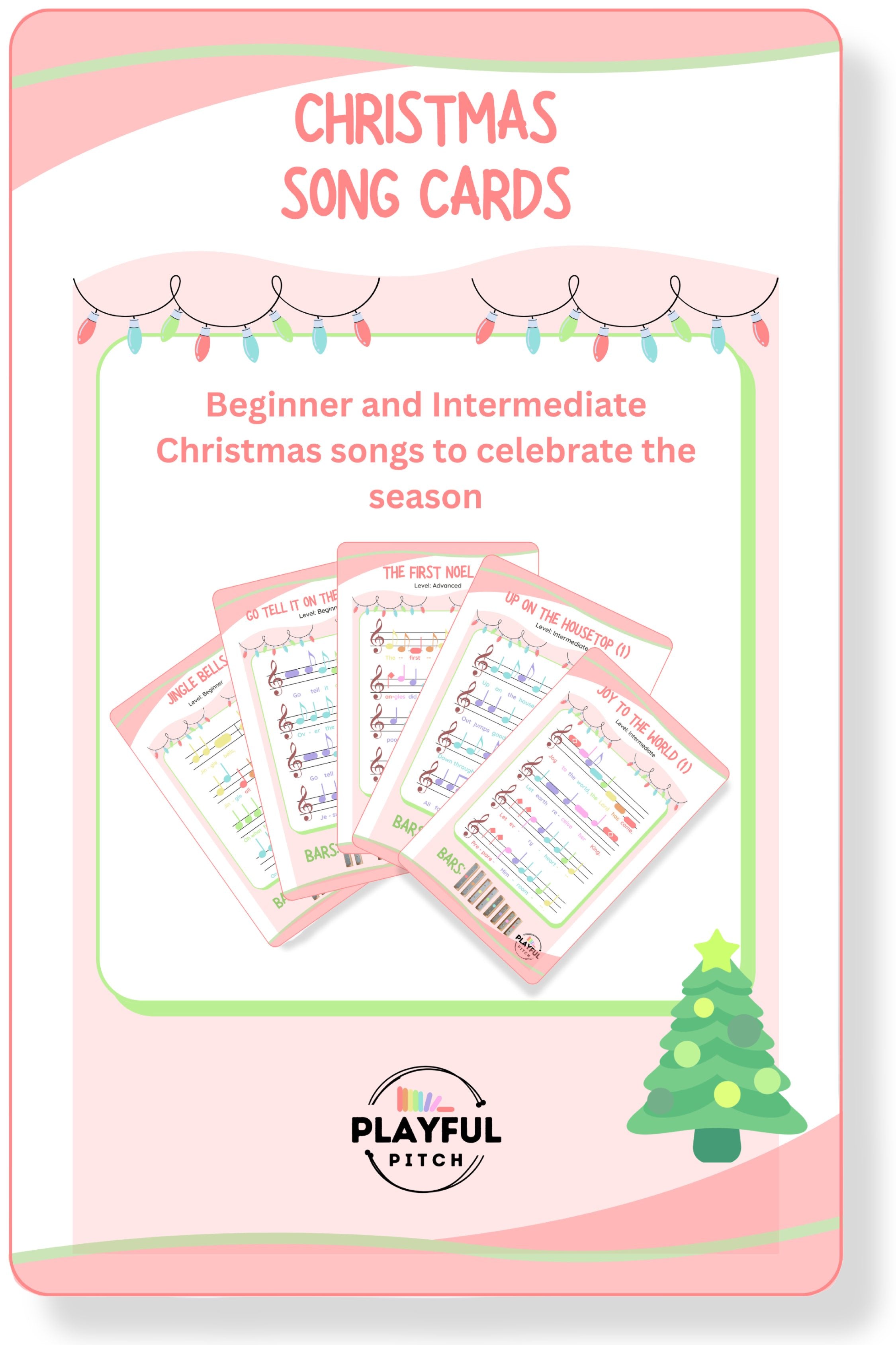 - Christmas + Religious pitch cards bundle: includes 6 popular Christmas songs (religious & secular), and 6 Religious songs (Catholic & Christian Hymns, and children’s Bible songs.)