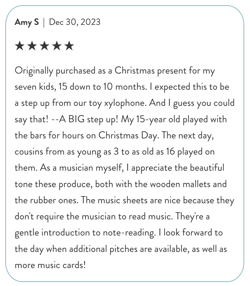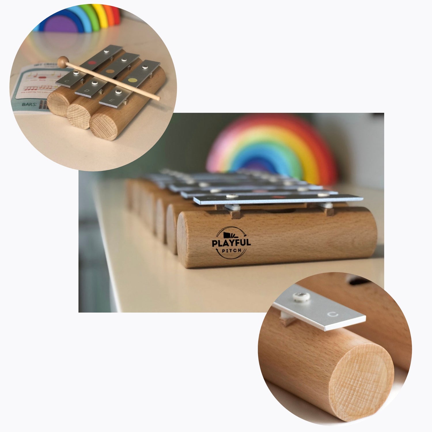 The ultimate Montessori-inspired bundle to start and continue your child’s journey of musical learning and play. The color-coded pitch bars and song cards allow a child to play music with ease and intuition.