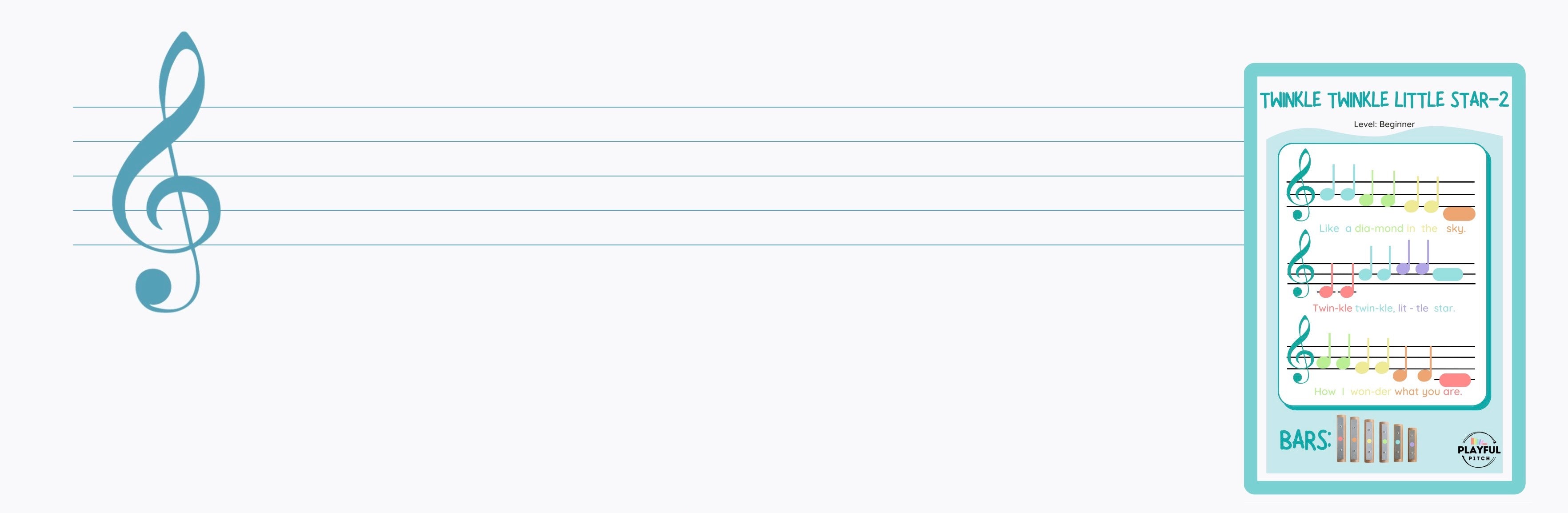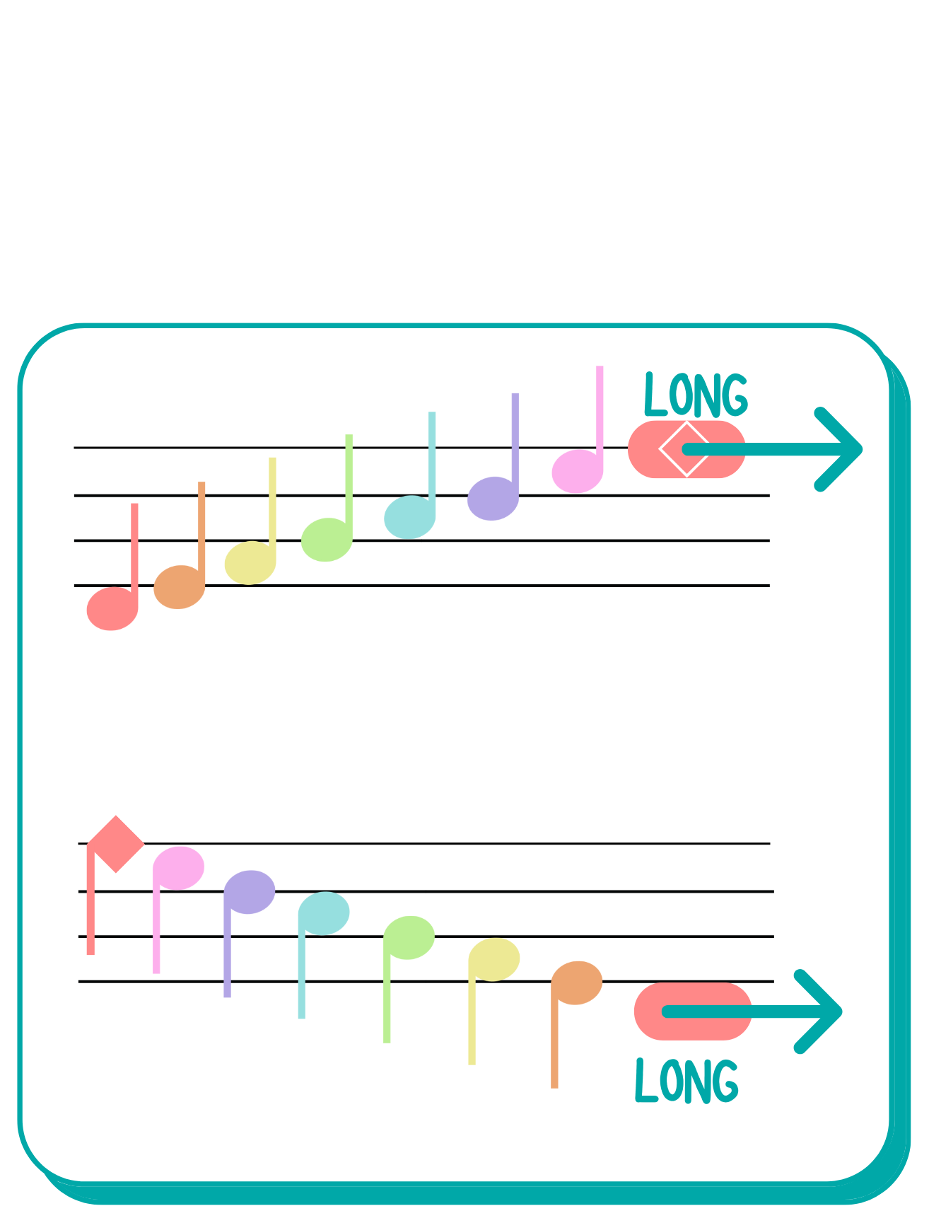 An adapted style of traditional musical notation, so that young children can read it based on self-directed intuition. They are introduced to concepts in traditional music notation in a gentle way.