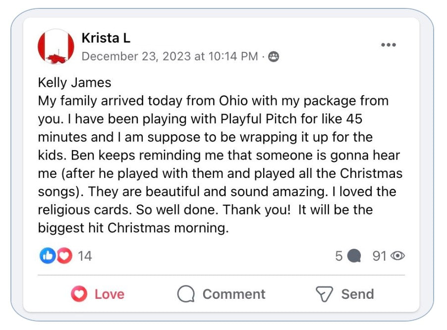 With Playful Pitch instruments, music learning is a child-directed, beautiful, and joyful experience.