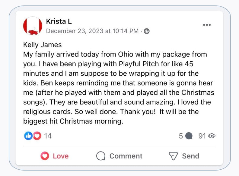 Also - some kids and parents are just not ready for the time and financial commitments of formal lessons and professional instruments. Playful Pitch provides a way to introduce children to music, without spending the thousands it costs to buy a professional instrument and provide ongoing lessons.