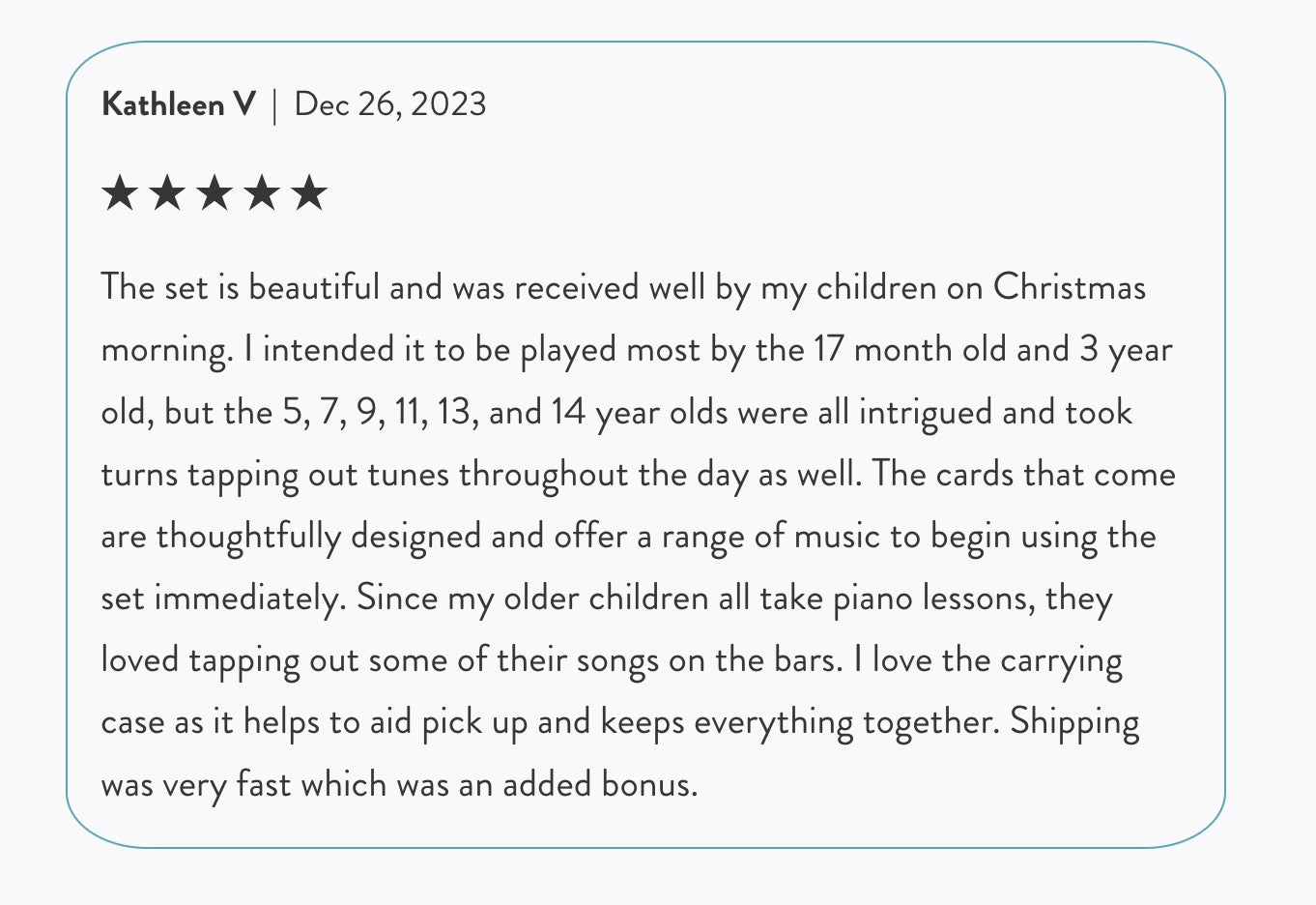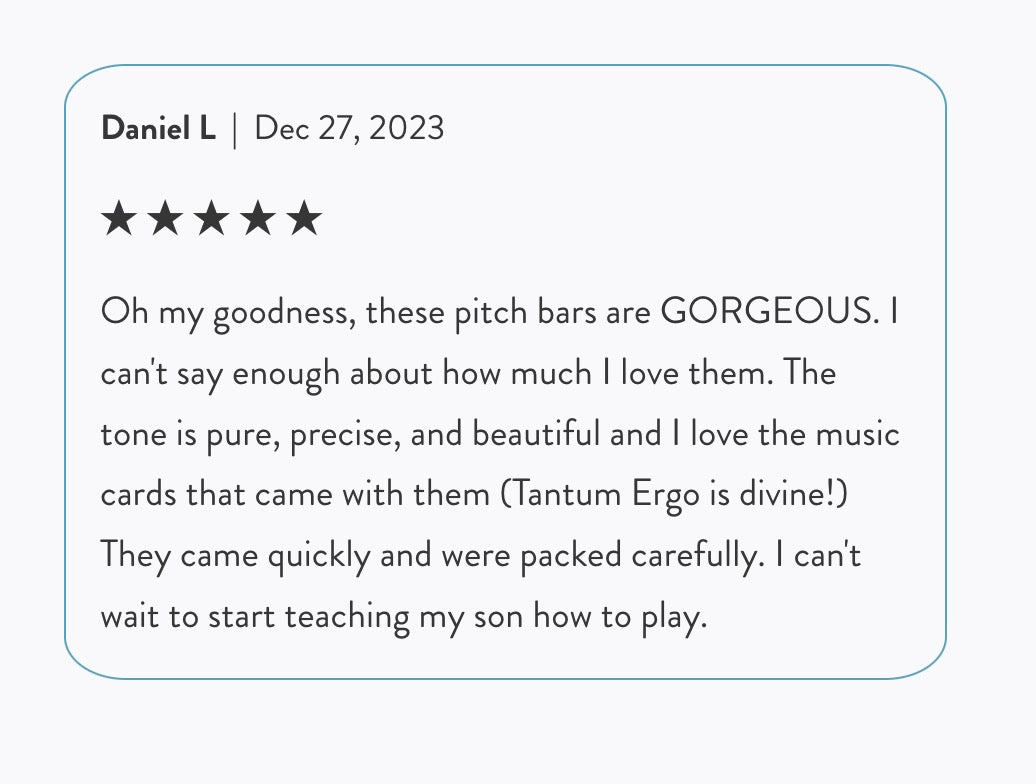 Not all instruments for kids are created equal. Our Pitch Bar Collection is made from quality materials that produce beautiful sounds.