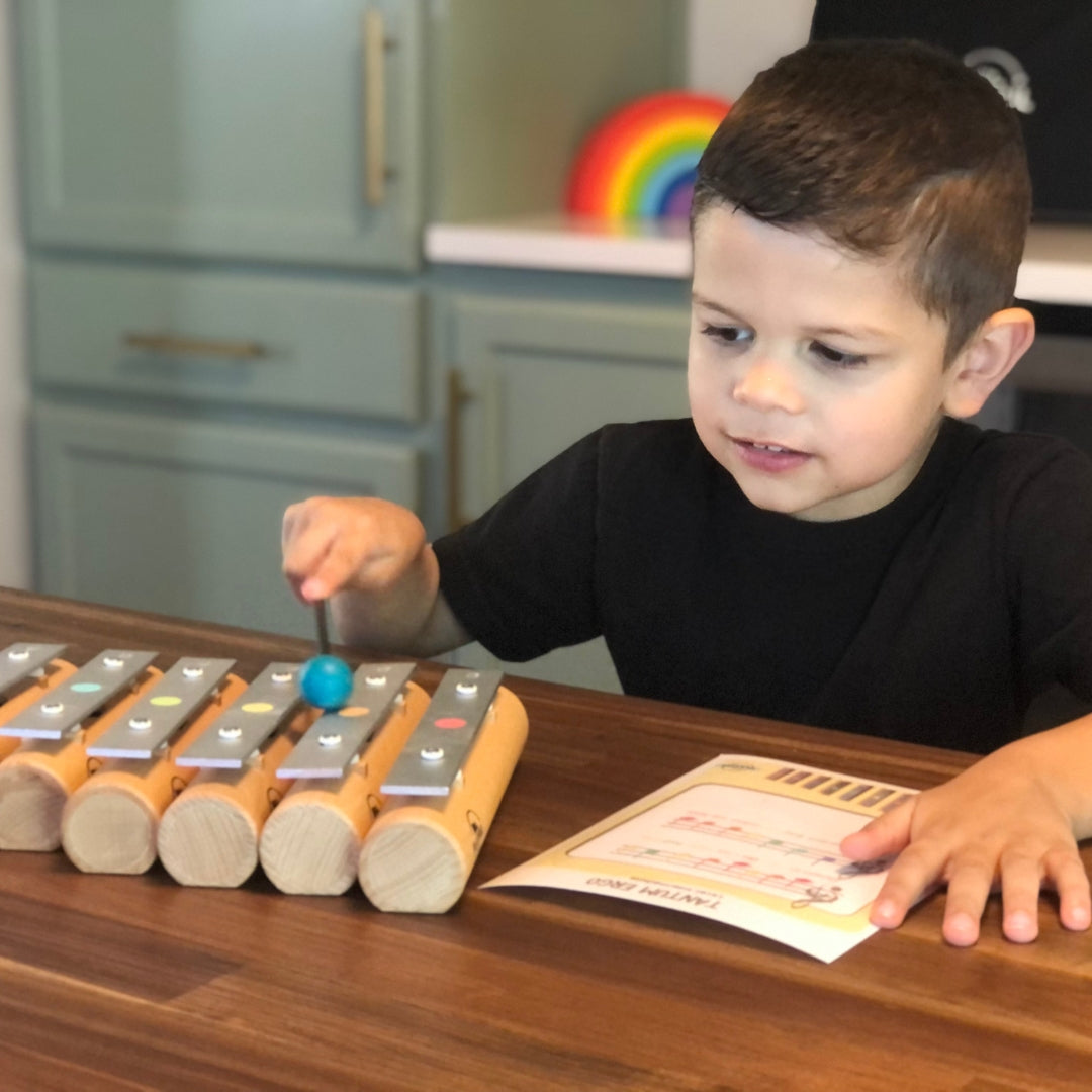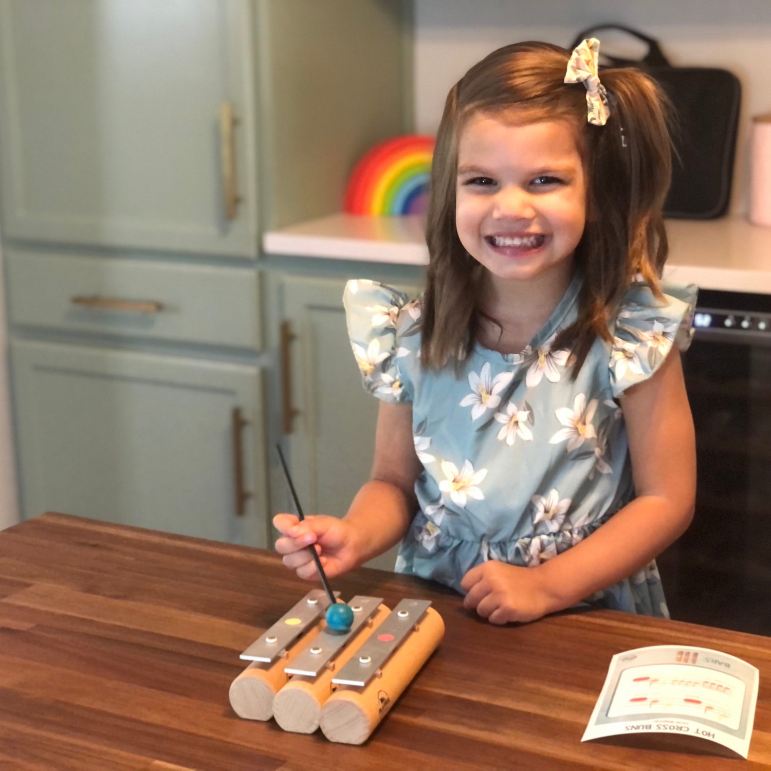 Bars are separated, so the instrument can be simplified for the youngest learner. Children can set up only the bars needed for each song, and play with more confidence and accuracy!