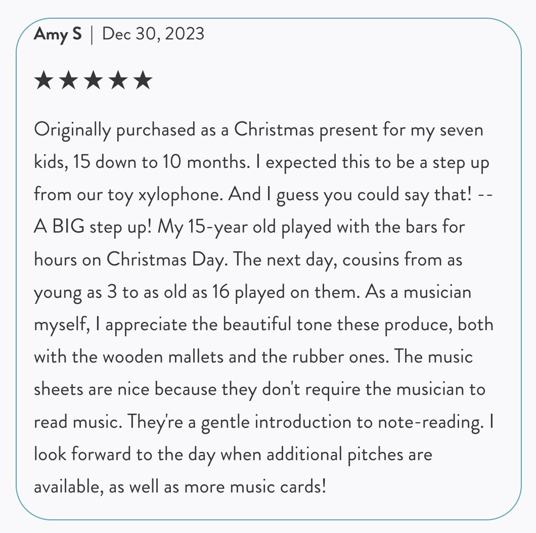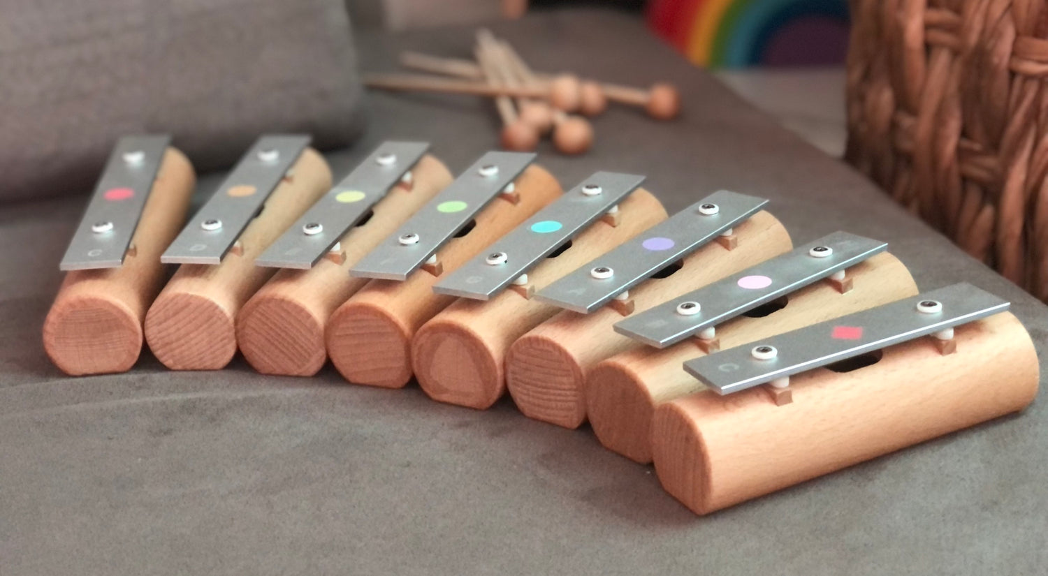 Playful Pitch Bars are made from professionally-tuned, high-end aluminum bars and beech wood – for a child to learn music-reading and pitch-training from a real, professional, durable instrument.