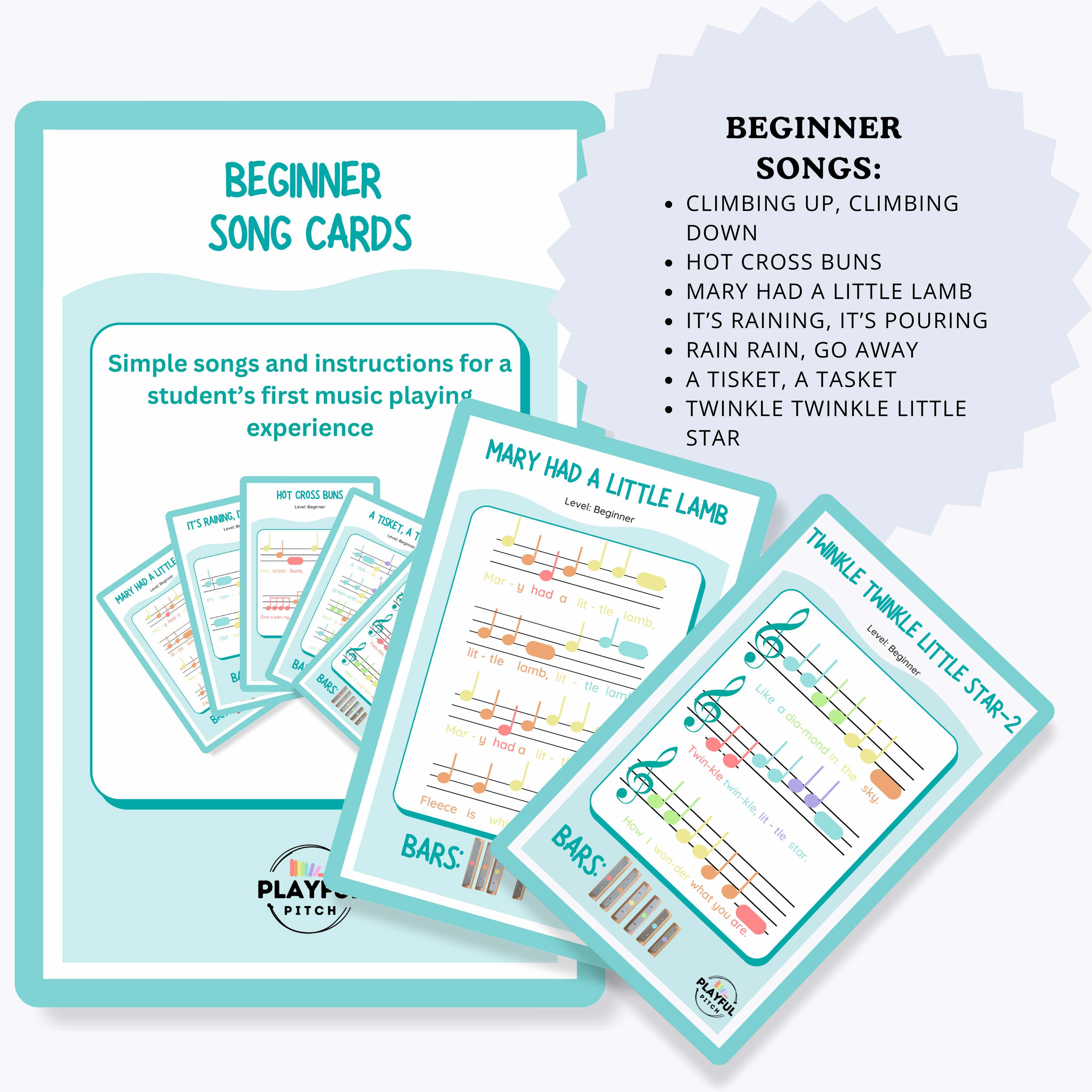 Not all instruments for kids are created equal. Our Playful Pitch collection are made from quality materials that produce beautiful sounds. Also, our song cards are printed on premium gloss card stock and features a thoughtfully curated song list in each card set.